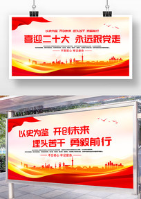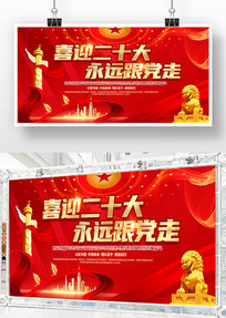 大气喜迎二十大胜利召开宣传党建背景展板设计
